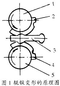 輥鍛是使毛坯(冷態(tài)的或熱態(tài)的金屬)在裝有圓弧形模塊的一對旋轉(zhuǎn)鍛輥中通過(圖1)時,借助模具型槽使其產(chǎn)生塑性變形,從而獲得所需要的鍛件或鍛坯。